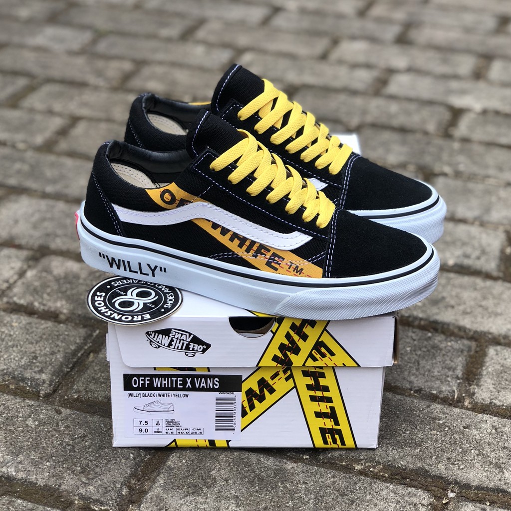 100 Premium Off White X Vans Oldskool Willy Black White Yellow Waffle Icc