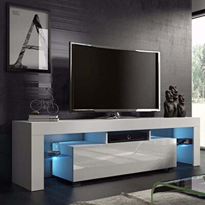 Details About 130cm Modern Tv Unit Cabinet Stand High Gloss And Matt Body Rgb Led Lights Uk