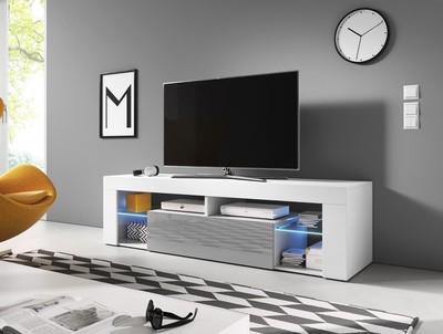 Flash Meuble Tv 160cm Blanc Laque Led Multicolore Fresh