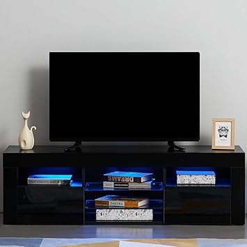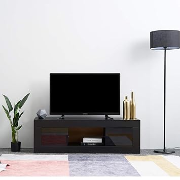 Generic Meuble Tv S 130 Cm Ss Ta Laque Noir Moderne Pour Tv Led Rvb
