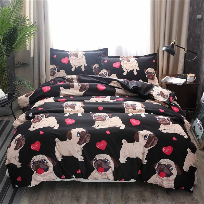 Sweet Pug Animal Print Luxury Duvet Quilt Cover Bedding Set